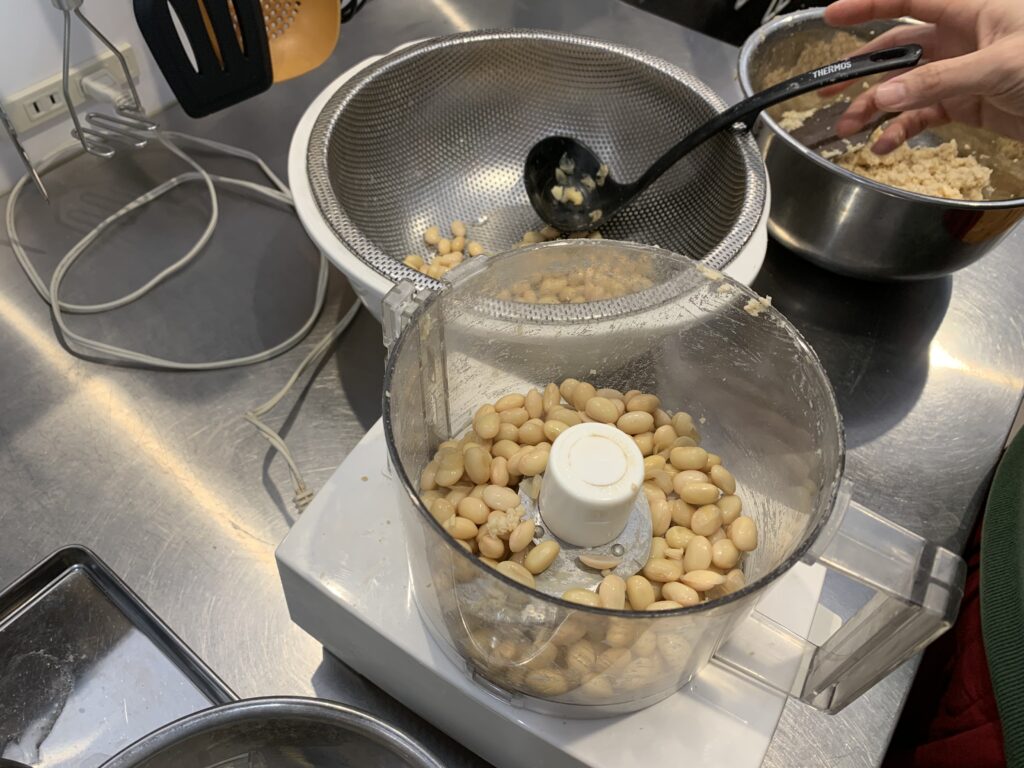 写真は、茹でた豆を潰しているところ(2枚)と、潰した豆+塩切り麹を押し潰して樽に入れたところ、昨年仕込んで出来上がった自家製味噌の4枚です。私のレシピは、倍麹と言われる、豆の量に対して麹が2倍量の甘めの味噌です。ほぼ毎日ありがたく美味しく頂いています。