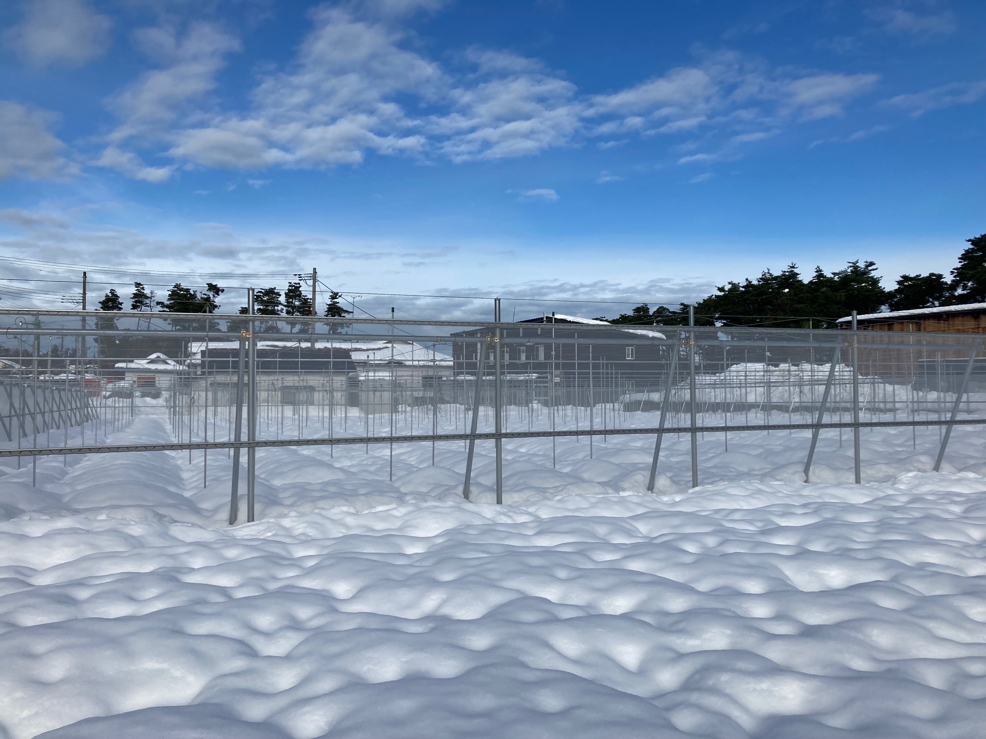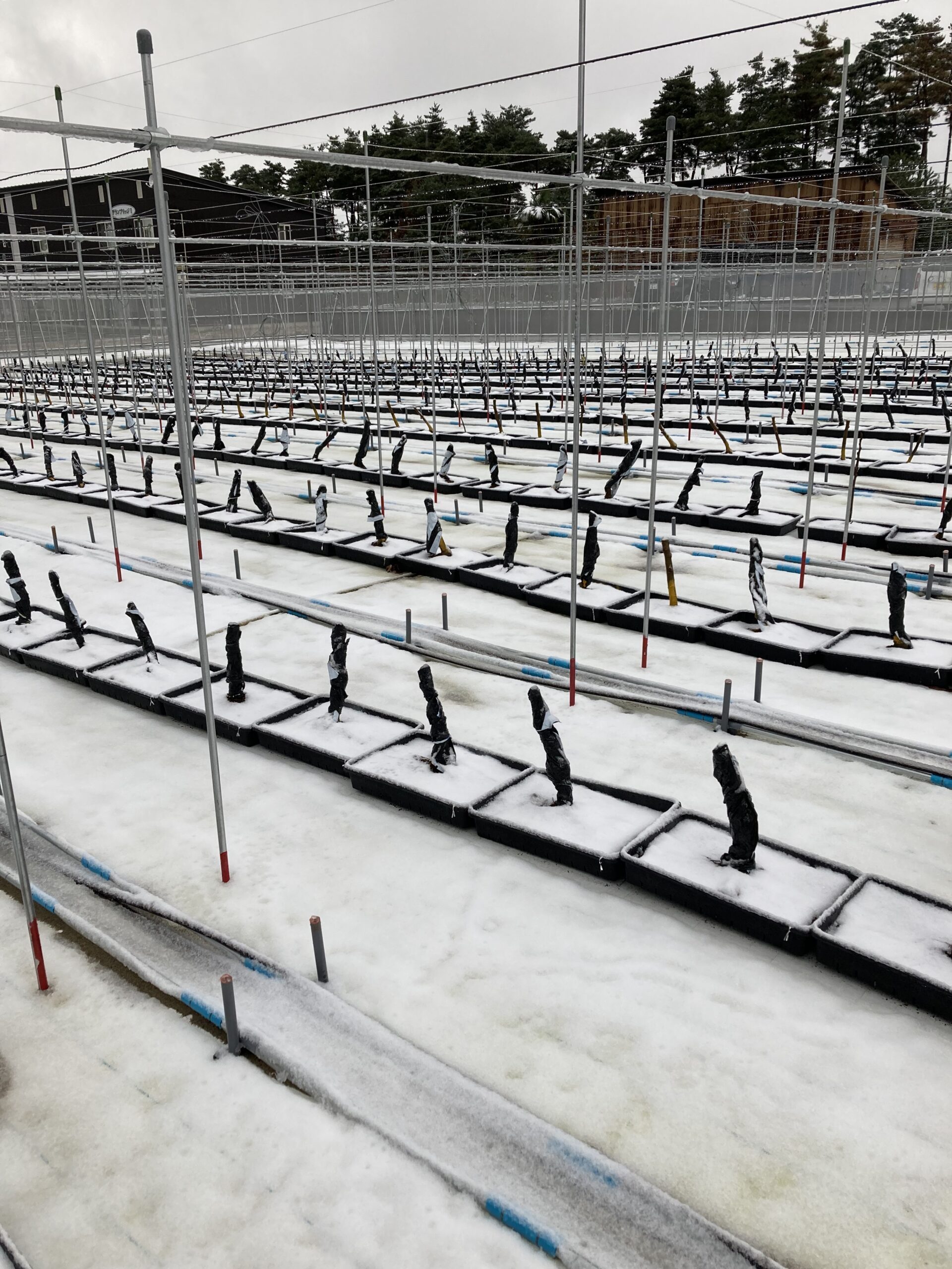 あけましておめでとうございます. 昨年12月の降雪は多く,写真のようになりました. 雪対策はしていたので,今見る限り被害はないと思っています.(実際には雪解けが済んでからわかることになりますが.) 今年はコンテナ数や枝数をさらに増やして,栽培管理をしていきたいと思っています. どんな1年になるか楽しみです.去年よりステップアップできる年にしたいです. どうぞよろしくお願いいたします.